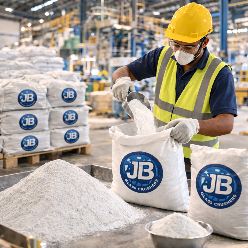 JB Glass Crushers is a trusted glass powder manufacturer in India, delivering high-quality, precision-processed soda-lime glass powder and glass cullet for a wide range of industrial applications. Based in Hyderabad, Telangana, we specialize in converting recycled glass into high-performance raw materials for manufacturing, construction, and recycling industries.