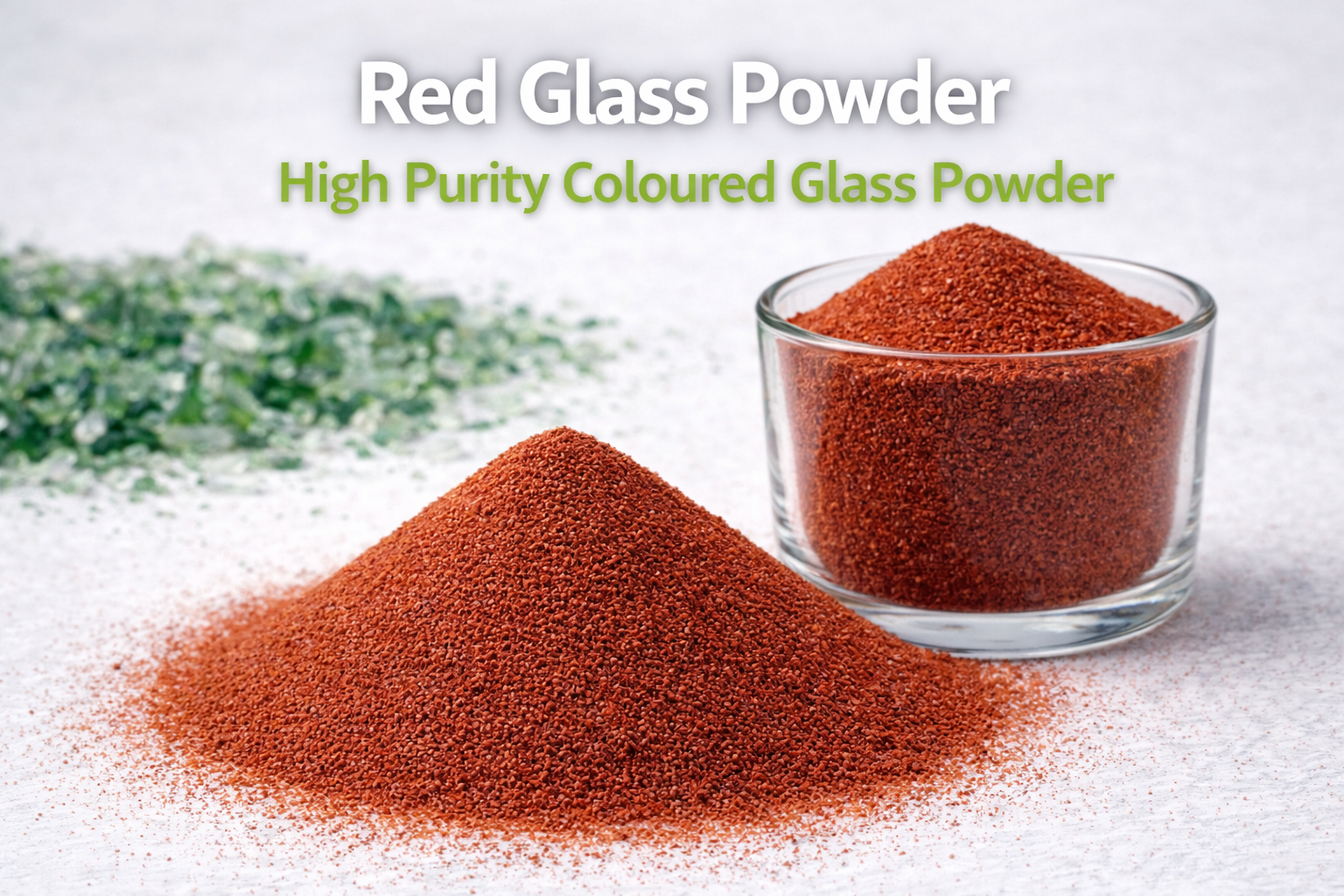 Red Glass Powder from JB Glass Crushers is a versatile industrial material produced from premium recycled glass. This finely milled coloured powder has a high glass purity of ~99%, a density of approximately 2.5 g/cm³, and is engineered for durability, performance, and sustainability. Its distinctive red colour and uniform particle structure make it suitable for a wide range of applications where visual aesthetics and material strength are important.